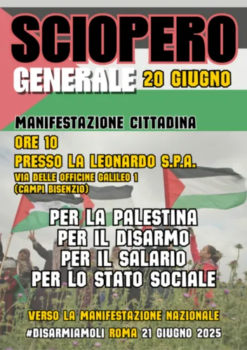 20 giugno: sciopero generale per la Palestina, per il disarmo, per il salario, per lo stato sociale