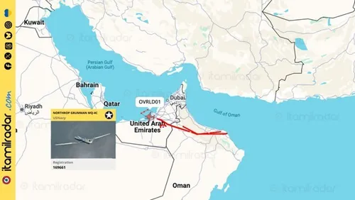 #stopthewar - Le attività di intelligence anti-#Iran con i droni USA di #Sigonella. Dopo il bombardamento dei siti nucleari iraniani di Fordow, Natanz ed Esfahan, un drone Triton @USNavy ha effettuato una lunga missione di intelligence nello Stretto di #Hormuz e del Golfo Persico