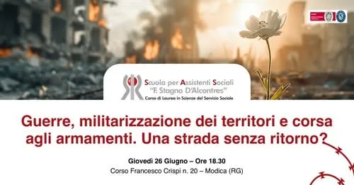 Giovedì 26 giugno, alle ore 18.30, presso la sede della Scuola per Assistenti Sociali “F. Stagno D’Alcontres” https://unimodica.it/guerre-militarizzazione-armamenti-2025/