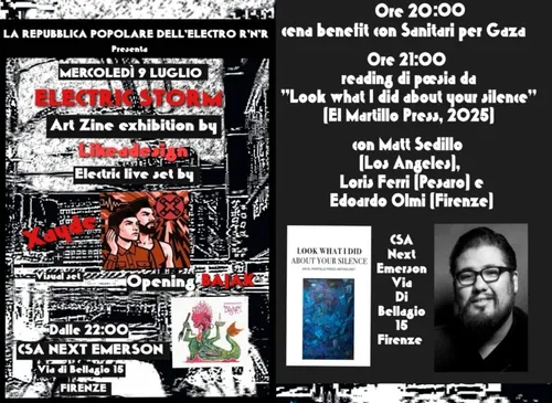 Mer 09/07 – Cena benefit “sanitari per Gaza” + reading poesie + Electric Storm
