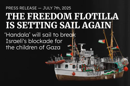 La #Handala salpa per rompere l’assedio – per i bambini di #Gaza #Siracusa. Il 13 luglio 2025 una nave civile in partenza per sfidare il blocco illegale e letale imposto da #Israele https://freedomflotilla.org/it/2025/07/07/la-freedom-flotilla-salpa-di-nuovo/?fbclid=IwY2xjawLbe-BleHRuA2FlbQIxMQBicmlkETBmWjlBYUUxUWlFZ2FvSnNuAR5DlWhq_z__4Z4gbuSpxXxr-HWc6JOWpYDqOrDMJKFqtATvEQw4fBDUh_sjeQ_aem_avdDpnoSKfyJSTWR_vFKOg
