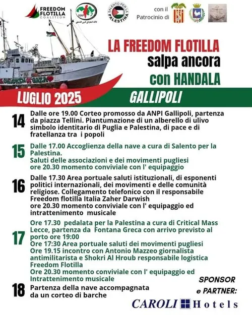 #Gallipoli (Lecce) 14-18 luglio - La Freedom Flotilla salpa ancora con Handala. In rotta verso #Gaza...