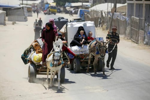 Eppure, i tipici toni acuti e bassi del raglio non cessano. Anzi, l’asino a Gaza è tornato ad essere prezioso. Il suo costo si è triplicato, perché da semplice trasportatore che tira un carretto di legno a causa della mancanza di carburante, è diventato, subito dietro le ambulanze, il principale «mezzo di soccorso» per i feriti di Gaza diretti agli ospedali, o a ciò che ne resta. Il nobile animale, che accompagna da migliaia di anni il genere umano, grazie alla sua grande forza, a Gaza rasa al suolo da Israele, riesce a muoversi tra le macerie, sulle strade dilaniate dalle bombe e in altri contesti difficili e rischiosi, contribuendo a salvare vite umane. Le sue zampe servono a portare in groppa e sui carretti gli sfollati nel triste peregrinare tra un punto e l’altro, sotto gli ordini di evacuazione dell’esercito israeliano. Proprio in queste ore, migliaia di palestinesi di Deir al-Balah, con ogni mezzo possibile si dirigono verso l’area di Mawasi, nel sud di Gaza, sotto l’urto dell’offensiva israeliana entrata in una nuova e più violenta fase.