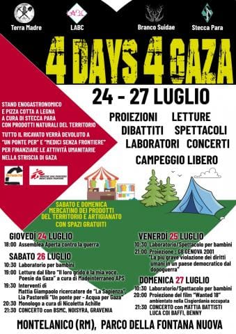 Un compagno ci presenta l'iniziativa "4 days 4 Gaza" che si terrà dal 24 al 27 luglio a Montelanico (RM) Parco della Fontana Nuova.
